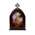 Capela São Miguel: A capela de madeira, com 20 cm de altura, apresenta uma foto detalhada de São Miguel Arcanjo em seu interior. A imagem captura a majestade e a força do santo, conhecido por sua luta contra as forças do mal. O fundo da capela é feito de madeira natural, conferindo um toque rústico e acolhedor. A combinação da foto de São Miguel com a estrutura de madeira cria um ambiente de proteção e espiritualidade, ideal para quem busca uma conexão visual com o santo e um símbolo de fé em sua decoração.